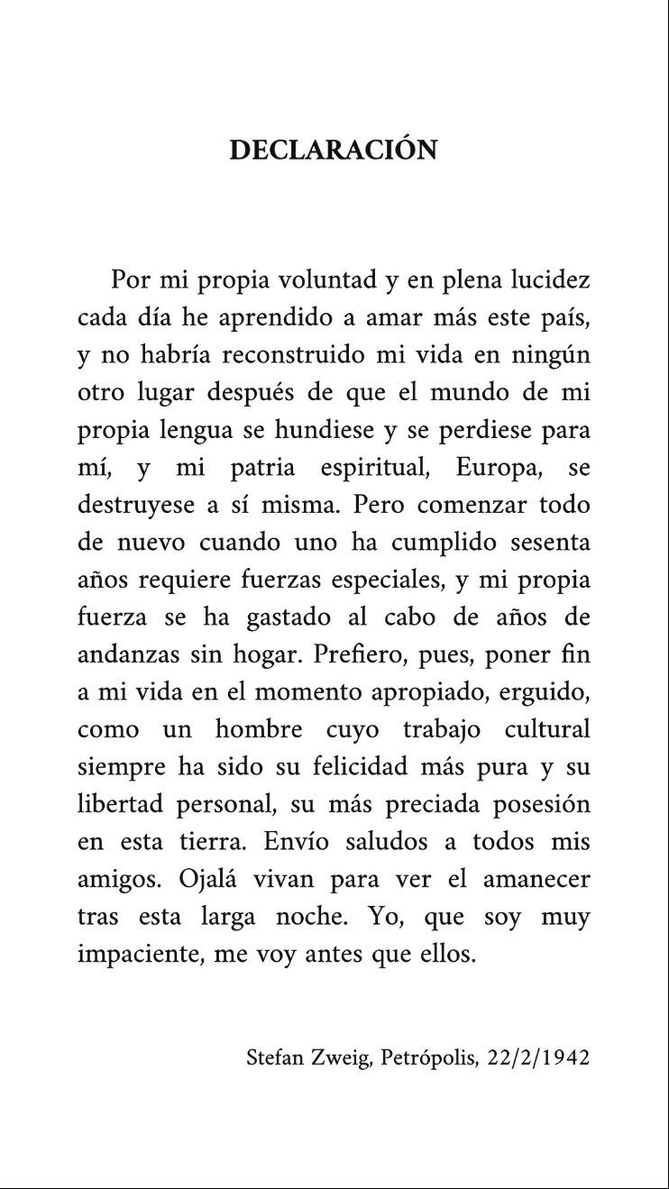Os dejo con la nota de suicidio que dejó Zweig para la posteridad.