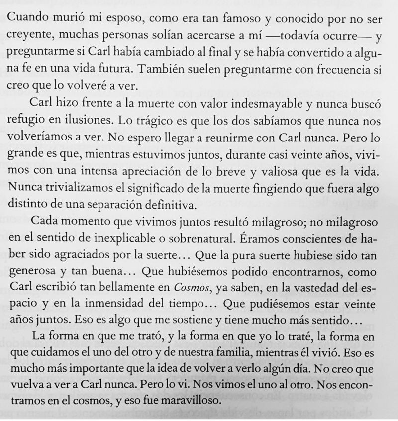 Recuerdo escuchar a Ann Druyan, la última mujer de Carl Sagan contestando […]